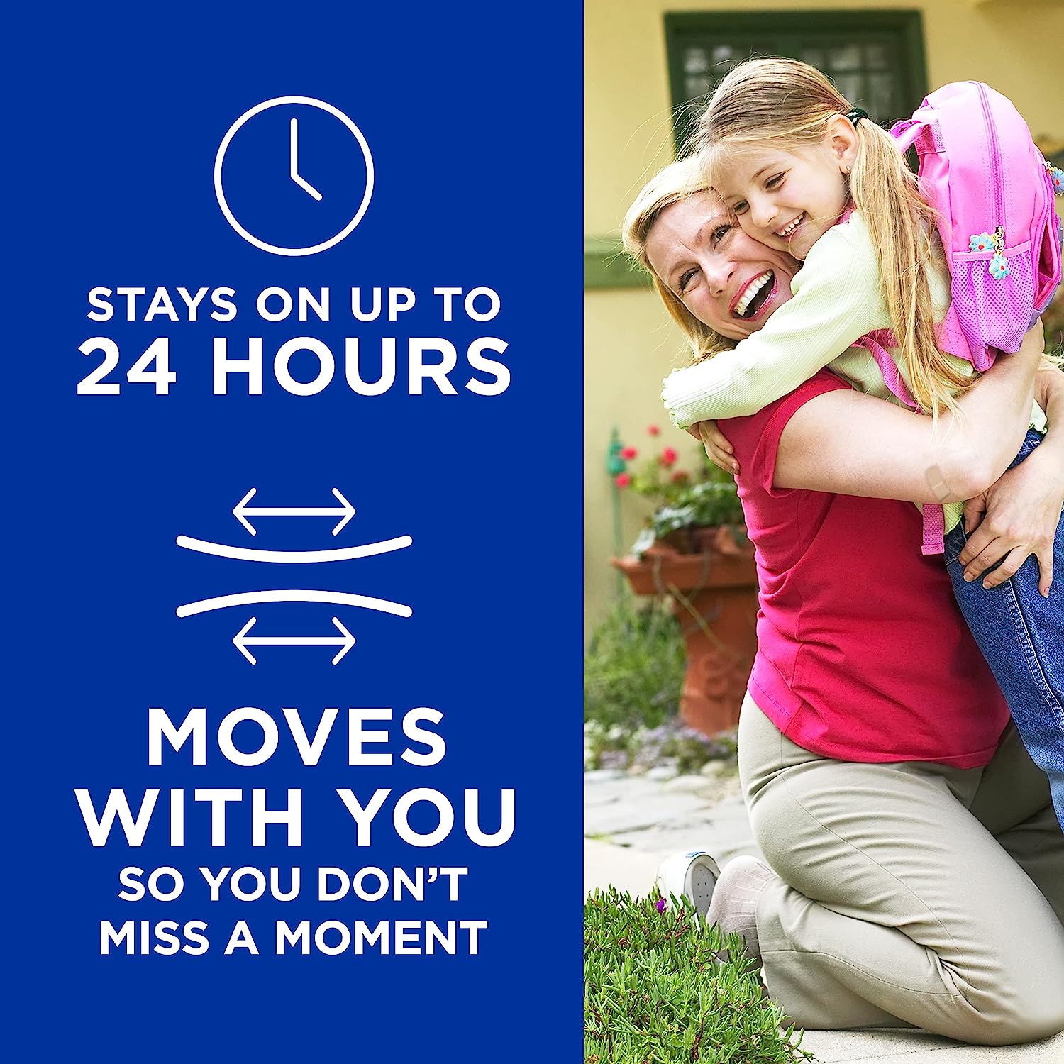 • These Band-Aid Brand Flexible Fabric adhesive bandages stay on for up to 24 hours and feature a unique Hurt-Free Pad that won’t stick to the wound as they wick away blood and fluids, allowing for gentle, pain-free removal