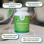 - Poobiotics uses 5 highly targeted probiotic strains that have been shown to be effective for constipation, diarrhea, gas, bloating, and supporting the microbiome-driven immune system