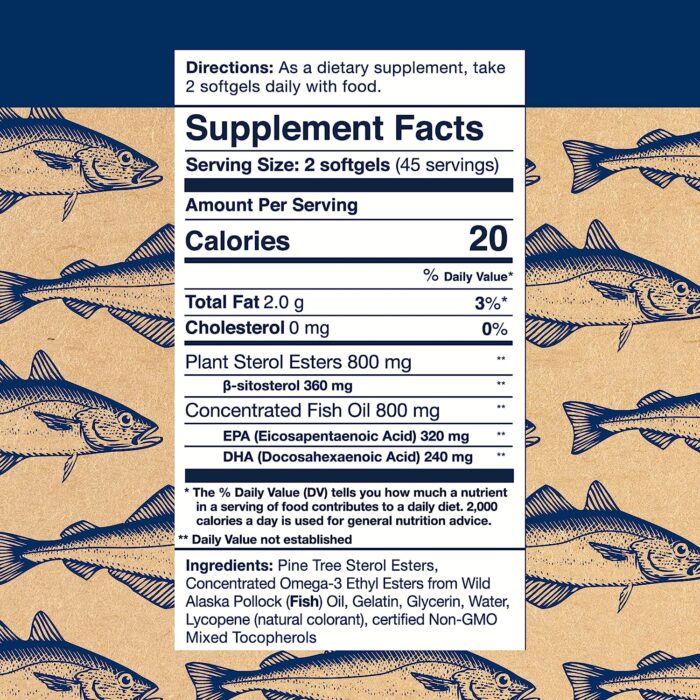 • Plant Sterols for Cholesterol: A natural alternative to support the maintenance of already-normal cholesterol. Most other plant sterol products are made from corn or soy, our fish oil supplements use non-GMO North American pine tree sterols